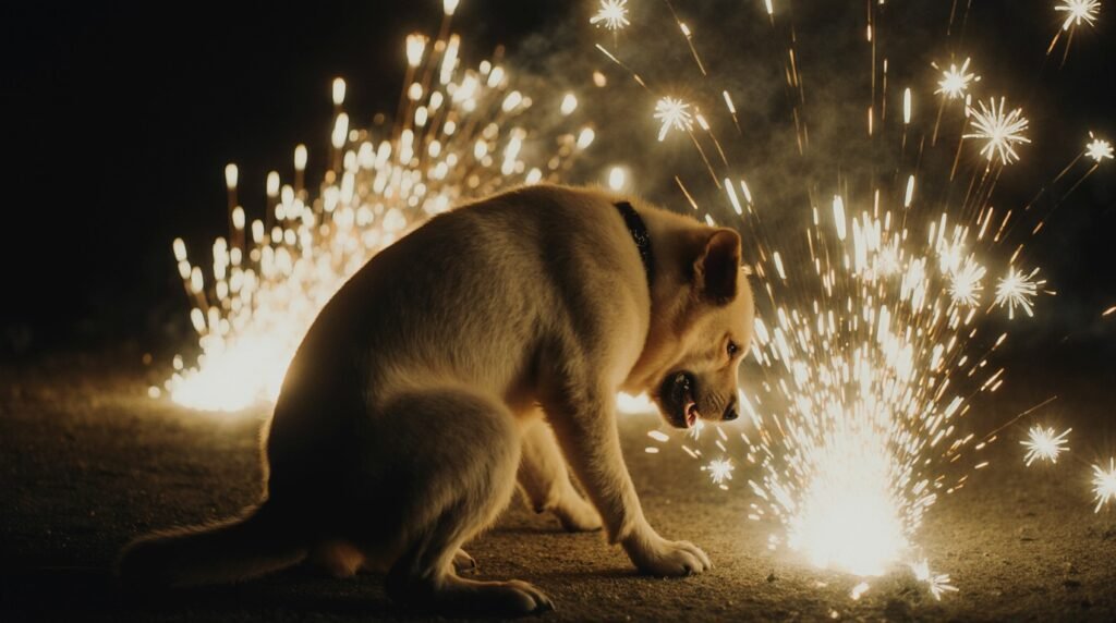 Dogs have far more sensitive hearing than humans, making the loud bursts of firecrackers and fireworks particularly frightening. The sudden, unpredictable noises can trigger symptoms such as trembling, hiding, excessive barking, panting, and in extreme cases, attempts to escape or injure themselves. Additionally, unfamiliar guests, changes in routine, and the presence of sweets or decorations can further confuse and stress dogs.